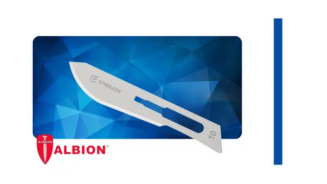 El producto preferido por los profesionales. Albion ofrece hojas de bisturí de acero al carbono de filo uniforme y punch de biopsia de precisión garantizada. Esterilización rigurosa para máxima seguridad. La mejor relación precio-rendimiento para distribuidores y departamentos de dermatología/cirugía.